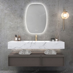 Conjunto de encimera de mármol azul marino para baño, accesorios de espejo suave de lujo para Hotel, tipo gráfico de estilo de madera, 150cm